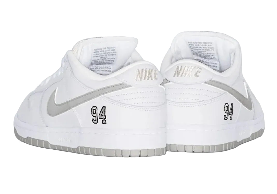 Nike SB Dunk Low Supreme 94 White Metallic Silver (Reflective)