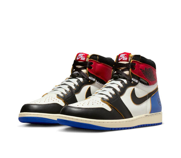 The Jordan 1 Retro High OG SP Fragment x Union LA Varsity Red Sport Royal is a special collaboration between Union LA, Fragment Design, and Jordan Brand. It features a bold mix of varsity red, sport royal, black, and white with premium leather on the classic Air Jordan 1 high-top silhouette. With unique Union stitching details and Fragment’s lightning bolt logo, this pair stands out as a stylish and collectible sneaker for any Jordan fan.